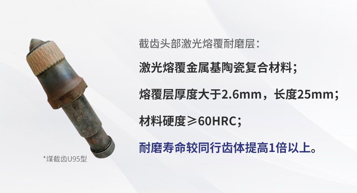 截齒齒頭表面激光熔覆耐磨層的作用是利用自身及其耐磨性、耐腐蝕性在齒頭形成一個(gè)防護(hù)層,使齒頭不與被采煤巖直接接觸,而是以該耐磨層與硬質(zhì)合金刀頭共同承受采煤過(guò)程中煤巖產(chǎn)生的強(qiáng)烈磨擦、沖擊等作用,可保護(hù)截齒頭免遭強(qiáng)烈的磨損而過(guò)早失效。