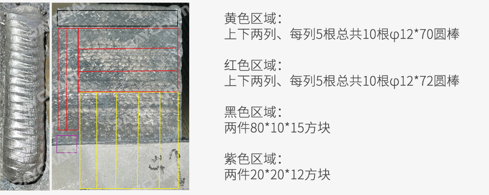 圖 ZM5鎂合金電弧增材樣塊內(nèi)部著色探傷檢測